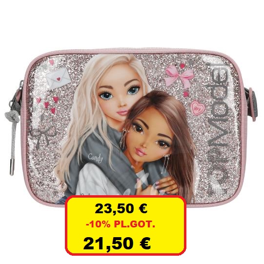 TOPModelova torba za najbolju prijateljicu u nježno ružičastoj boji ima prekrasan motiv dvostrukog modela i slatke ikone na prednjoj strani, koja je u potpunosti prekrivena šljokicama. Unutarnji džep ima zaseban džepić. Siva naramenica je podesiva po duljini. Slatka stvar koja privlači poglede: privjesak s svjetlucavom mašnom. Glavni materijal: 100 posto poliester; prednja strana: 100 posto polivinil klorid.