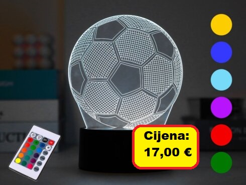 3D iluzijska lampa koja prikazuje nogometnu loptu kada zasvijetli, s optičkom akrilnom ravnom pločom s laserskim