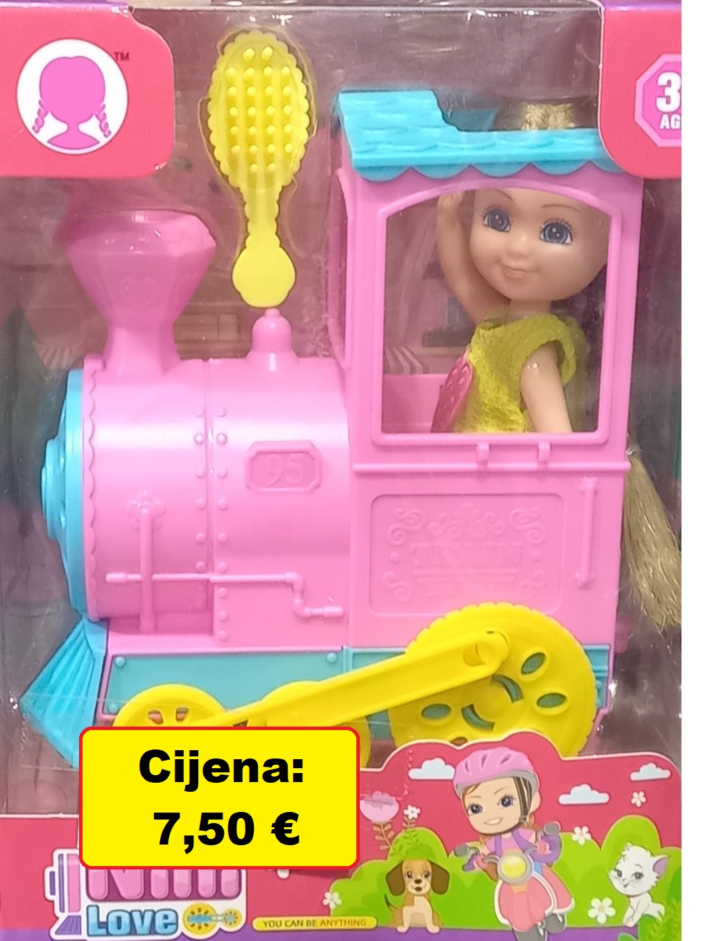 Lutka sa dodacima je simpatična mala lutka koja dolazi u setu sa svojim prevoznim sredstvom. Svako od pakovanja sadrži dodatne sitnice za lutku, kao što je češalj za češljanje njene duge kose.   Lutka je izrađena od plastike, visine 14,5cm.