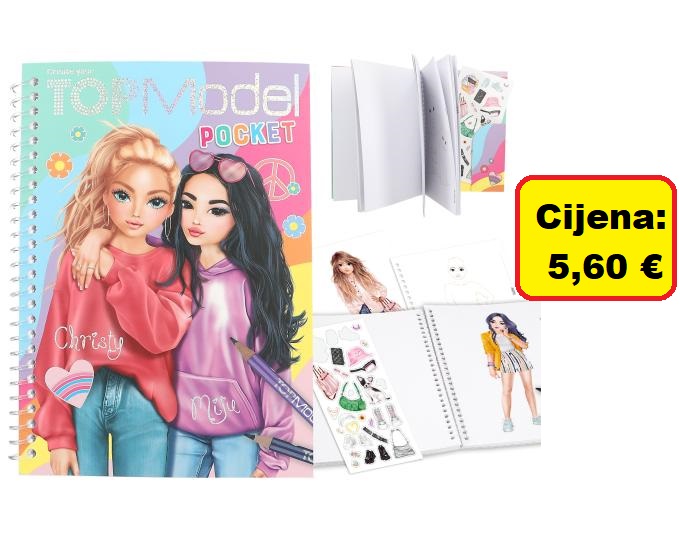 TOP MODEL Mini bojanka u praktičnom džepnom formatu donosi raznolike dizajne za poticanje mašte i kreativnosti. Uključuje jednu stranicu naljepnica s modernim modnim dodacima, što je čini idealnim suputnikom za crtanje i bojanje u pokretu.