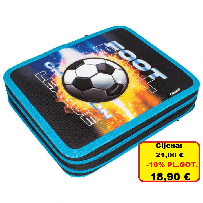 2 zipa; sadrži 48 komada pribora: flomaster školski 18 boja, boje drvene 18 boja, olovka grafitna HB x 2 komada, šiljilo, gumica, ravnalo pvc, olovka kemijska trobojna, olovka tehnička 0,5 mm, mine 0,5 mm, olovka kemijska, trokut pvc, škare školske i raspored sati obostrani; dimenzija: 23x20x5 cm