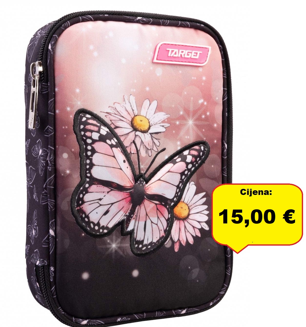 Napunjena kvalitetnim priborom marke “Target” + dodatna prazna pernica koja se može odvojiti