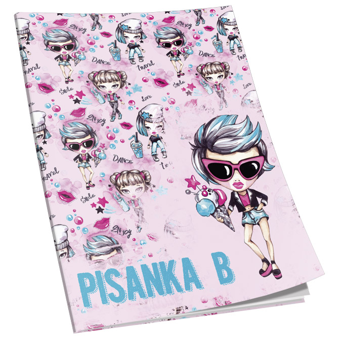 B5; papir: 80 g/m²; korice: kunstdruck (300 g/m²); mat plastificirane i parcijalno glitter; sa predlistom i zalistom