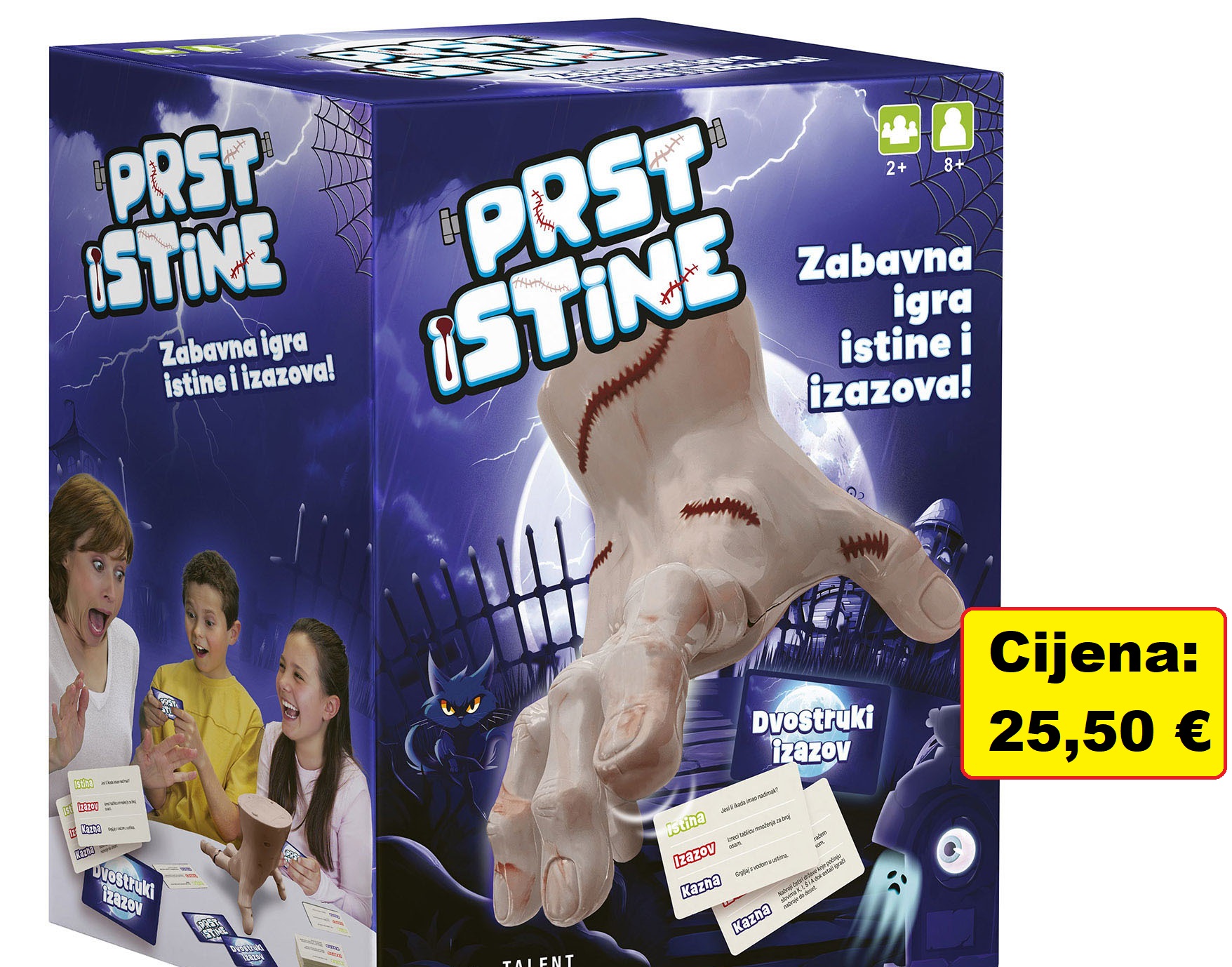 Prst istine donosi nevjerojatno zabavno iskustvo za cijelu obitelj. Ova igra nudi inovativan i uzbudljiv način druženja uz pomoć neobične elektronske ruke koja nasumično bira igrače. Kada te ruka odabere, vrijeme je za akciju – moraš birati između ispunjavanja izazova ili odgovaranja na pitanje, dok tvoji suigrači budno prate tvoj napredak.