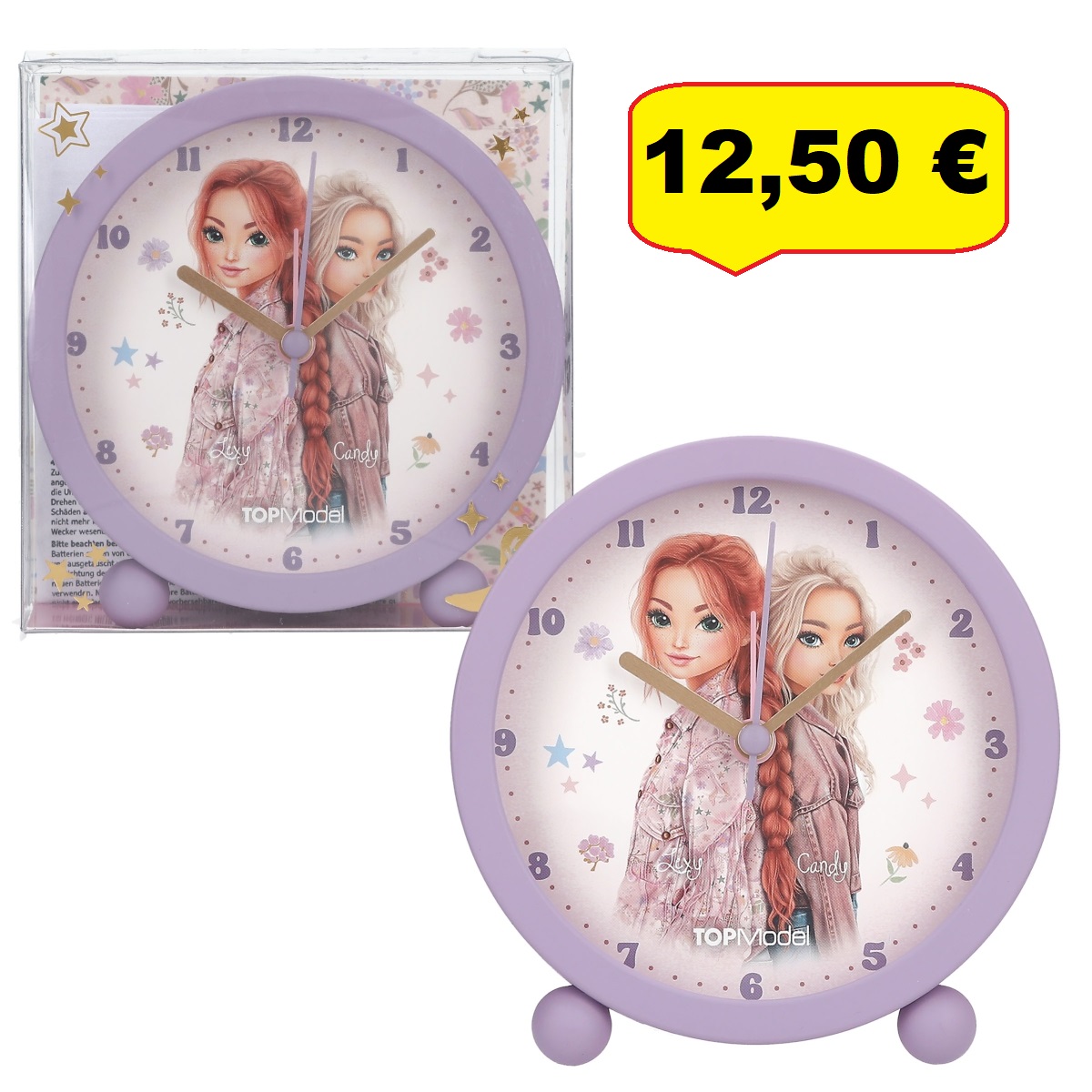 Ovaj budilnik s slatkim motivom dvostrukog modela čini ustajanje zabavnim. Kućište je ljubičaste boje, budilnik ima funkciju alarma i svjetla te male kuglice kao stopala.