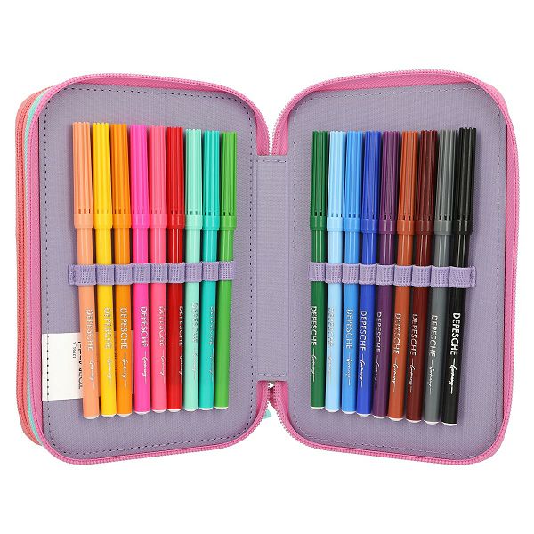 Pretinci pernice potpuno su ispunjeni sa 18 bojanki i 18 flomastera, 2 olovke, gumicom, šiljilom, ravnalom, škarama, ljepljivim štapićem i malom