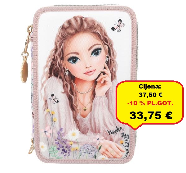 Pernica s 3 odjeljka iz TOPModela ima romantični model s prednje strane s otiscima malih cvjetića i leptira oko njega.