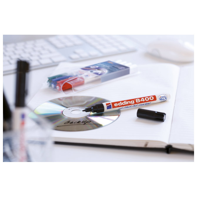 permanentni, pigmentni; mekani okrugli vrh; širina ispisa 0,5-1 mm; vodootporan; jako otporan na svjetlo; za trajne natpise na CD-ima, DVD-ima i plastici